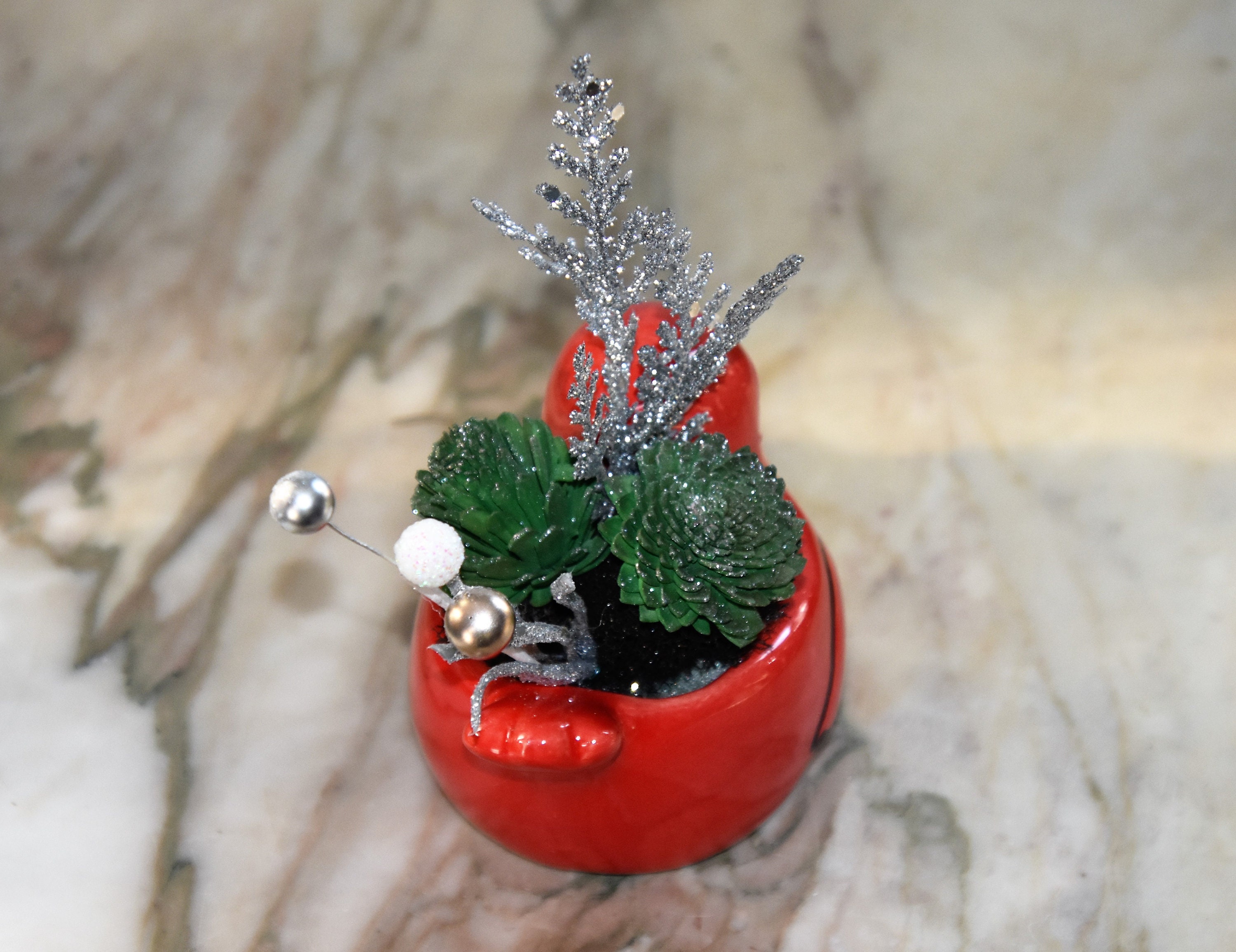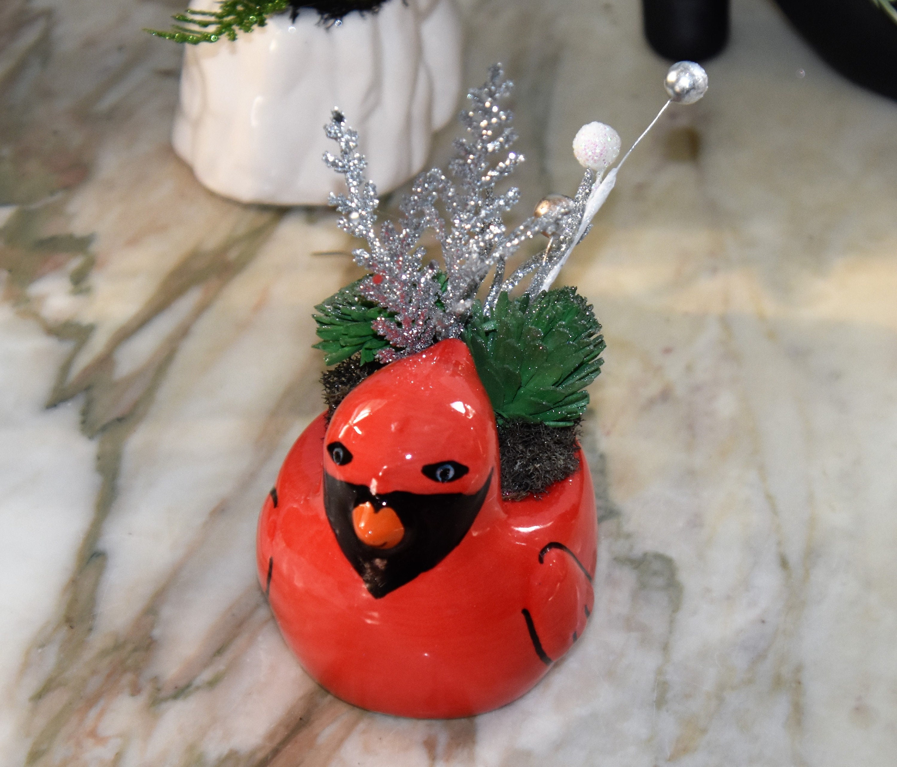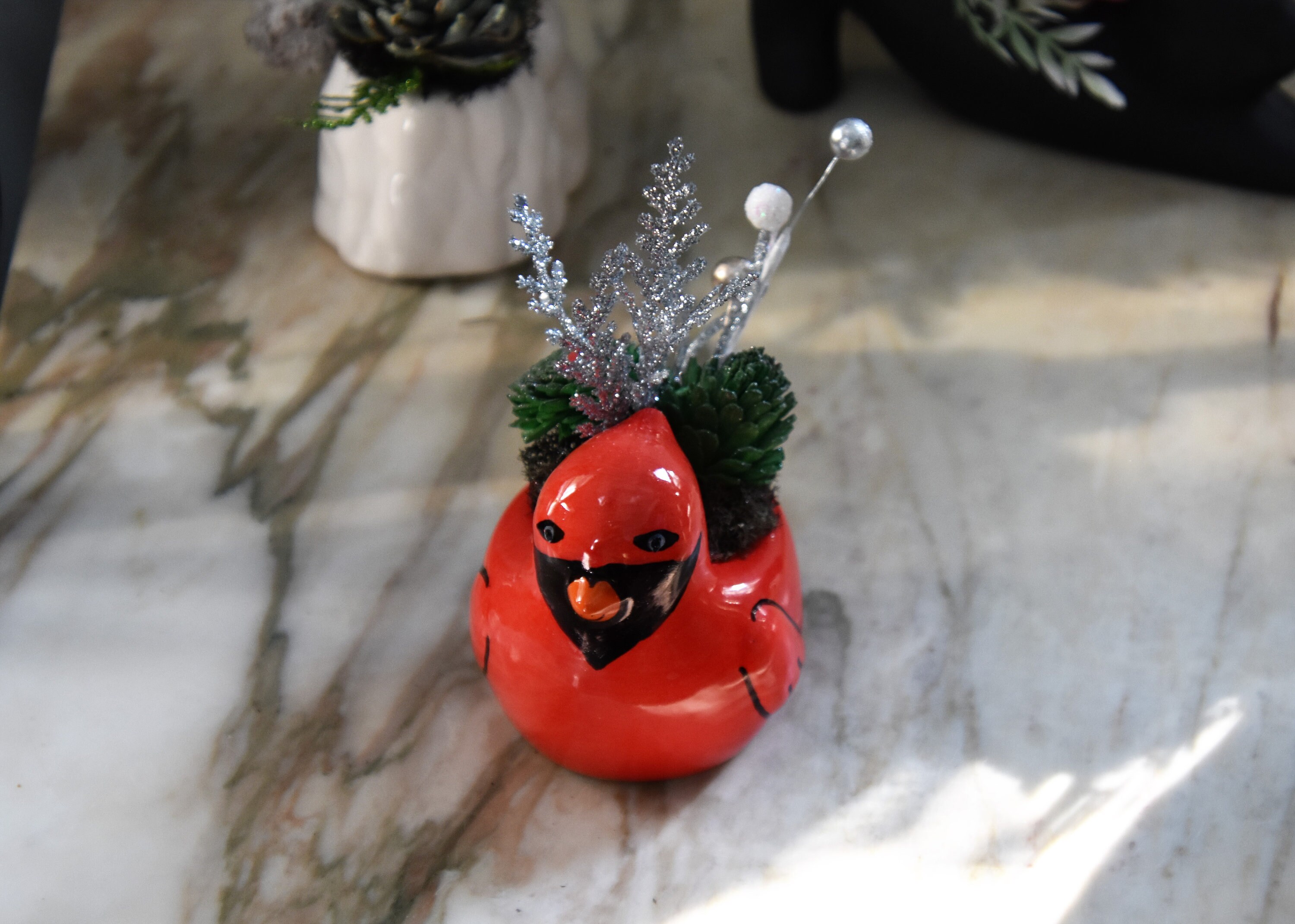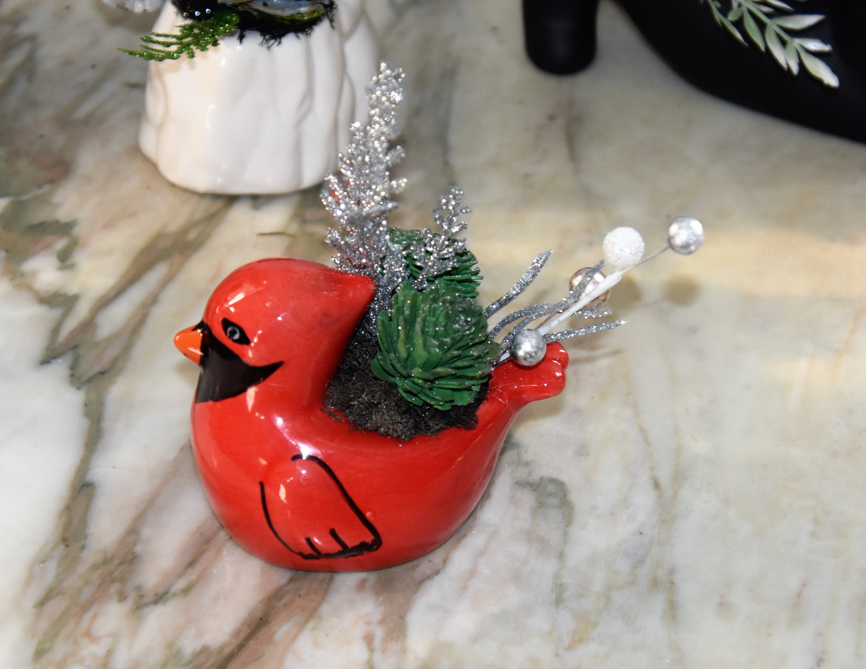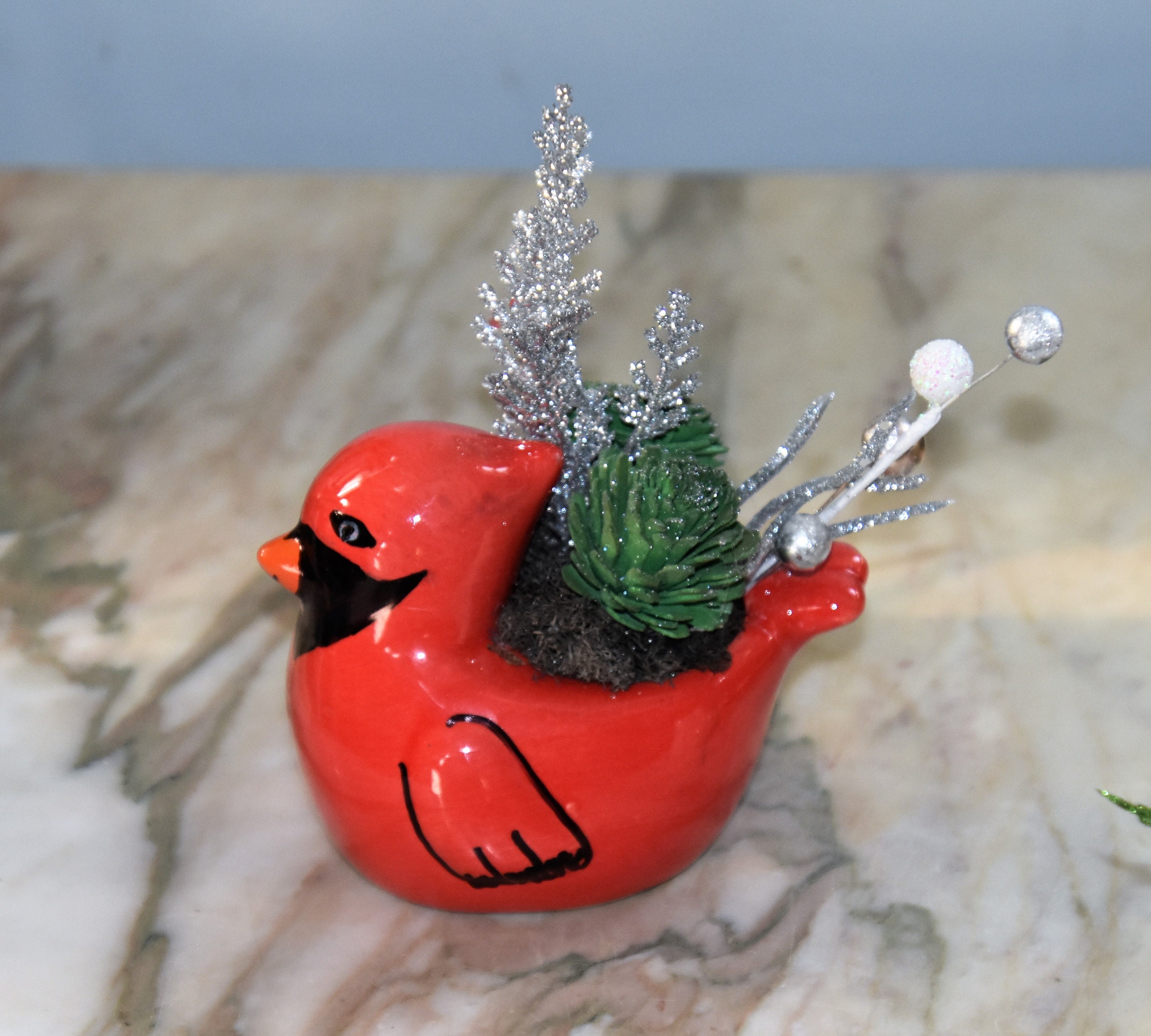Adorable cardinal planter filled with a hand dyed *Sola wood sparkling succulents and fillers.