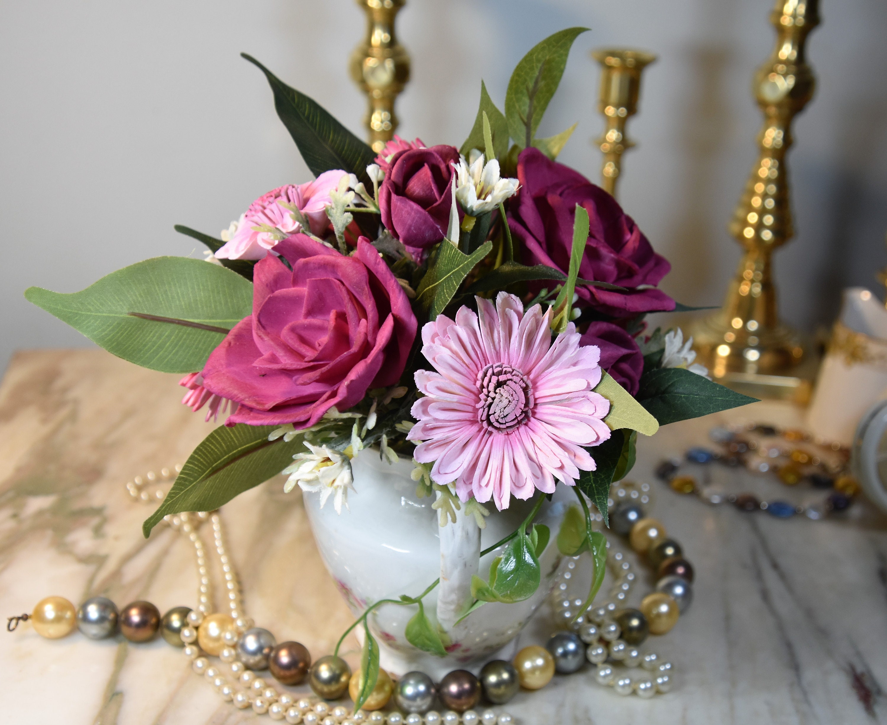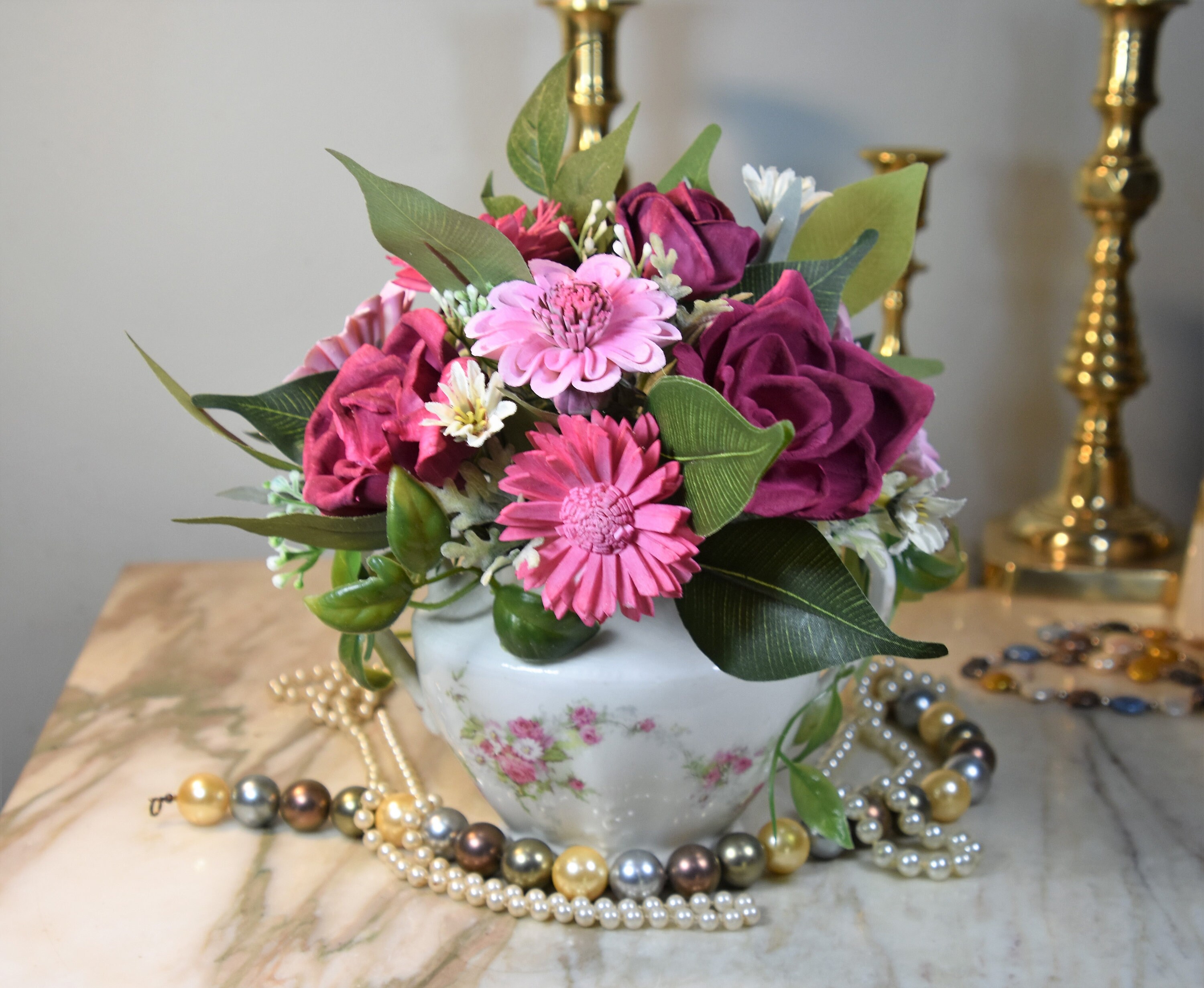 See many more orphaned sugar bowls and pitchers/creamers filled with Sola flowers in our listings, each one unique, one-of-a-kind.