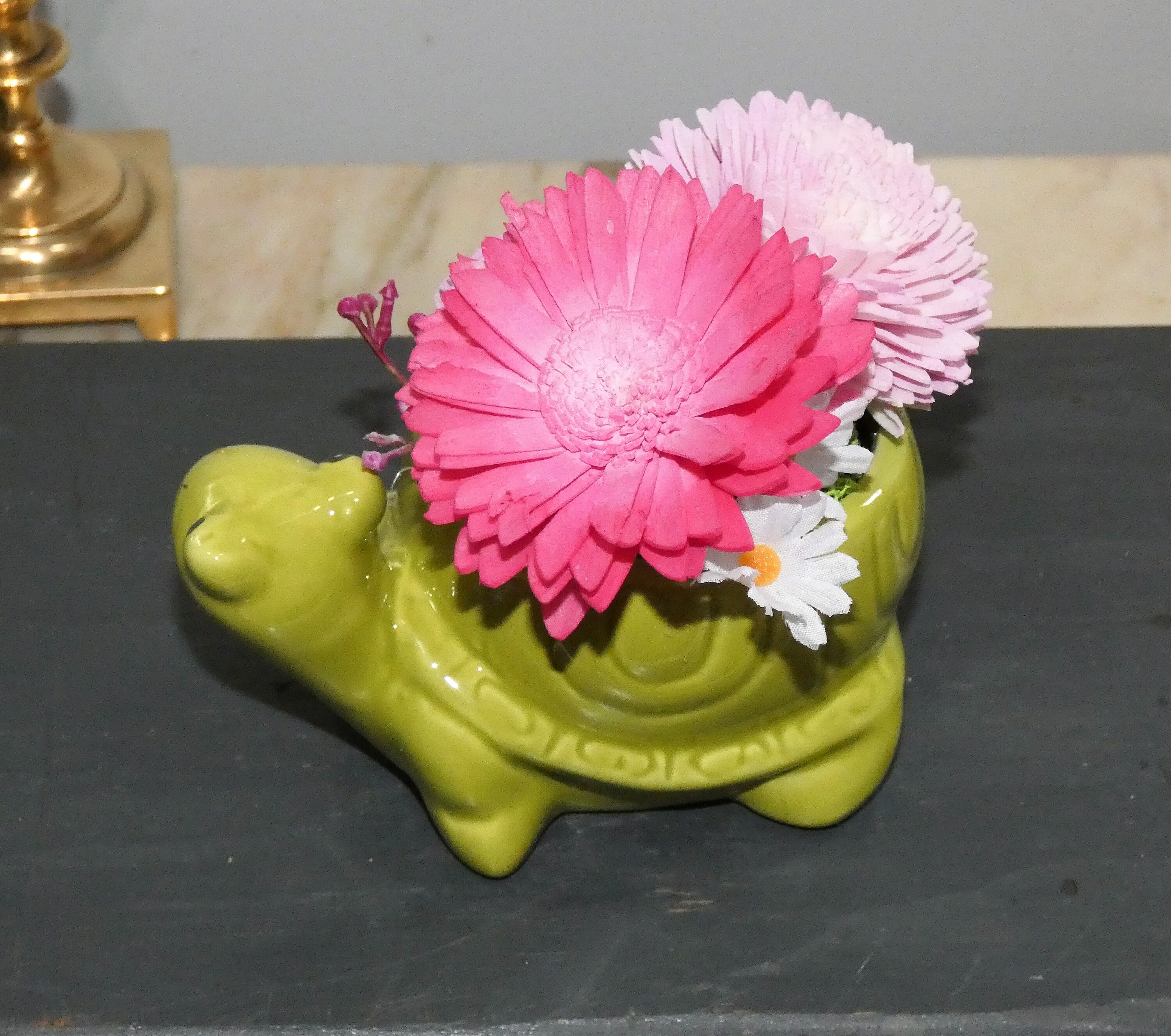 Cute little turtle planter with airbrushed *Sola Wood Flowers