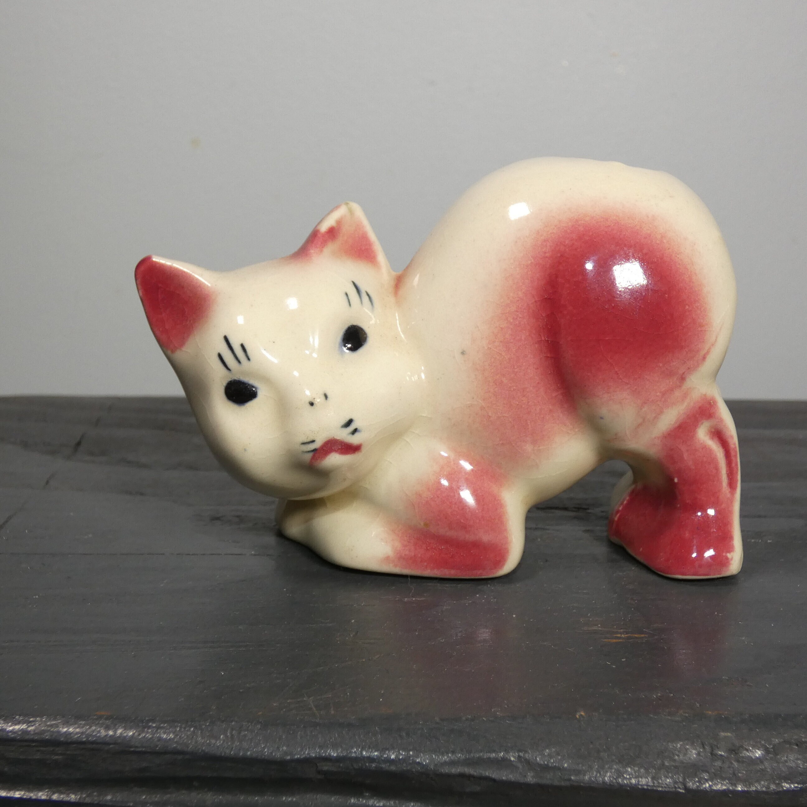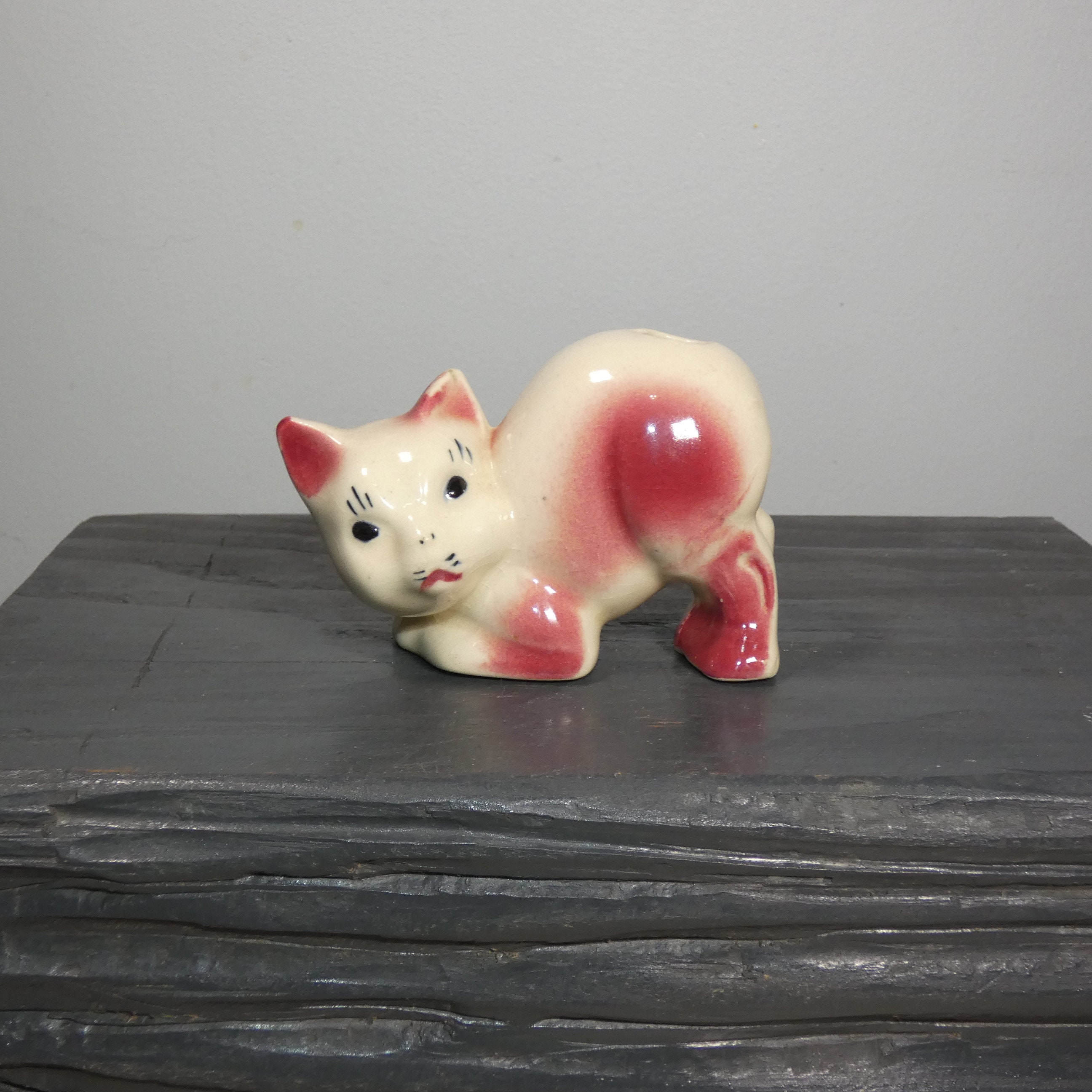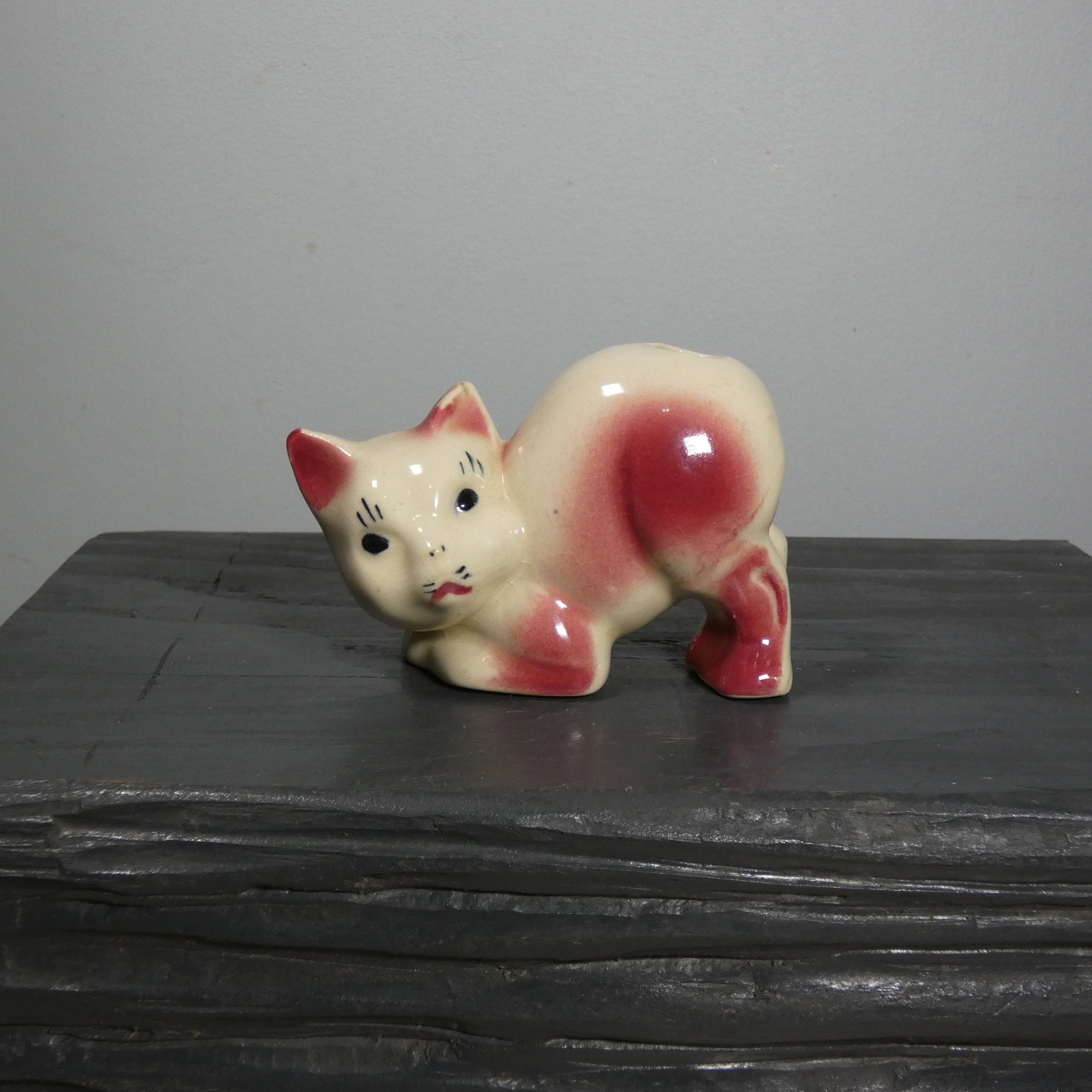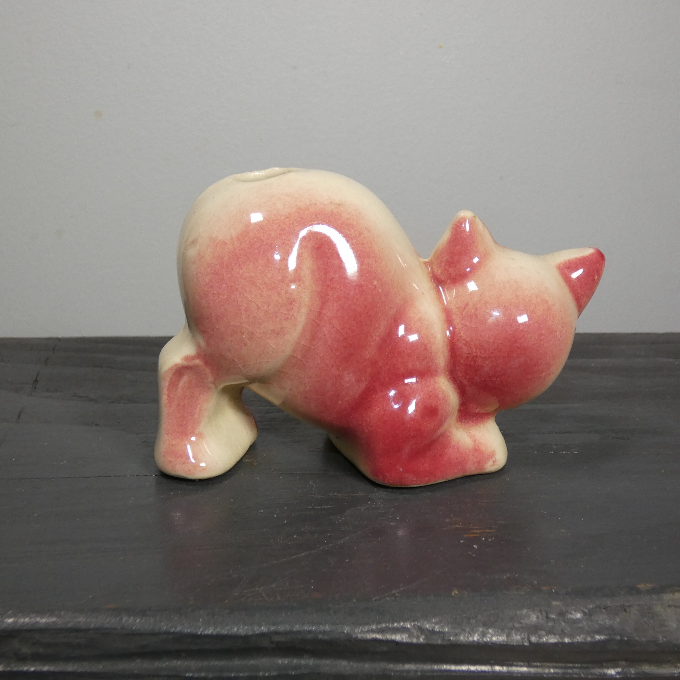 Small vintage stretching cat planter/bud vase/pencil/brush holder.