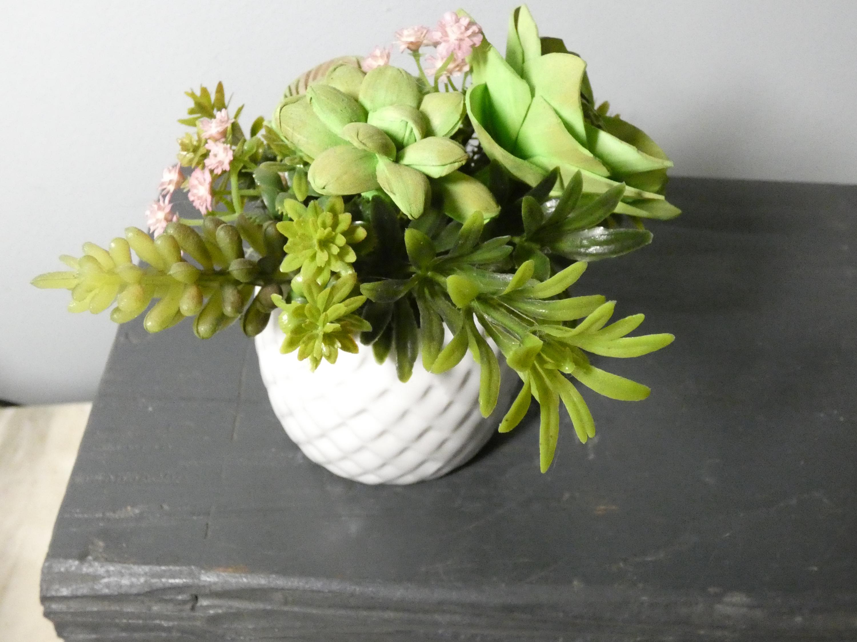 Planter with arrangement aprox 5 inches at widest point and 4 inches high.