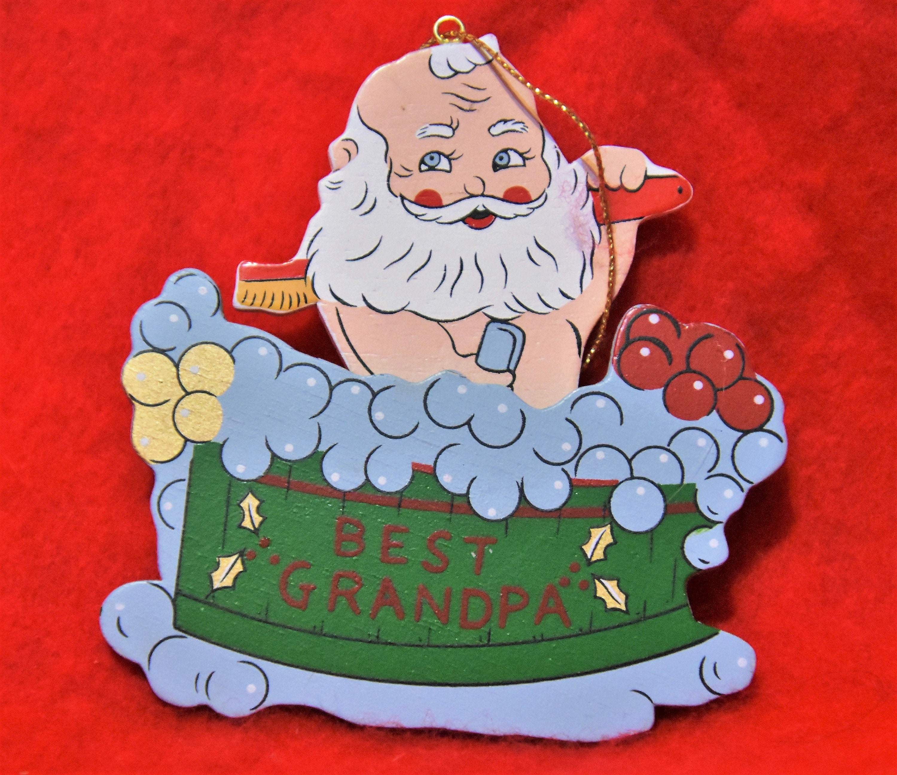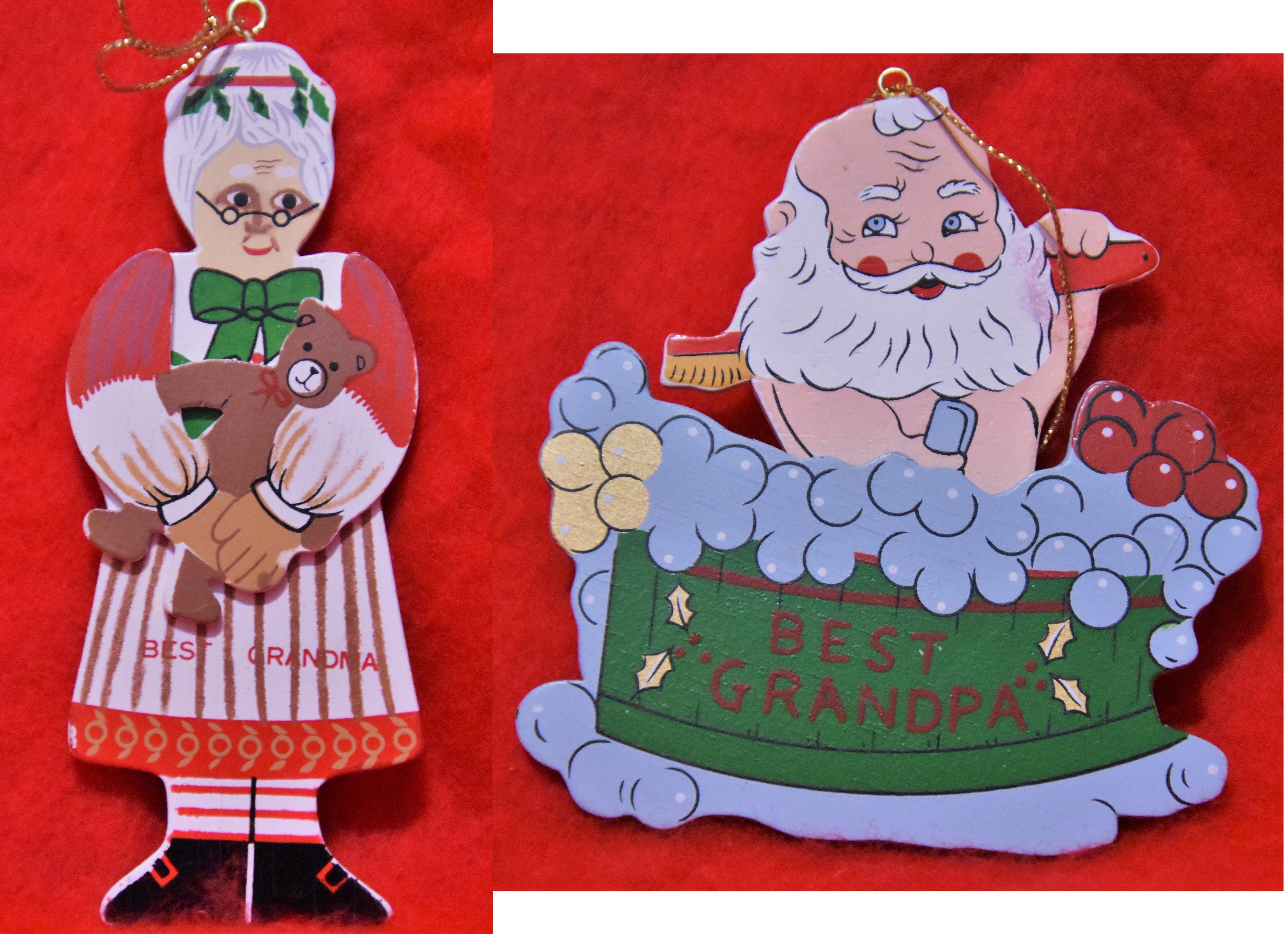 Two cute ornaments, Best Grandma and Best Grandpa, painted on wood shapes - two layers.